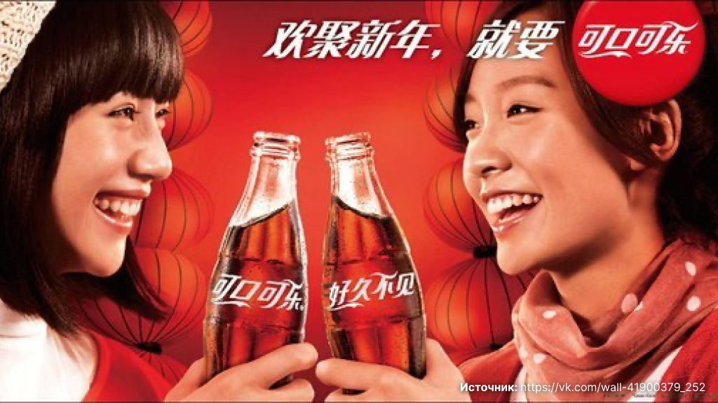 - Coca-Cola в Китае. При первом выходе на китайский рынок название перевели звуками, которые читались как «Ке-ку-ке-ла». Оказалось, что в зависимости от диалекта это означало либо «Укуси воскового головастика», либо «Кобыла, нашпигованная воском». Компании пришлось перебрать 40 000 вариантов иероглифов, чтобы найти сочетание «Ко-ку-ко-ле» («Полный рот счастья»).