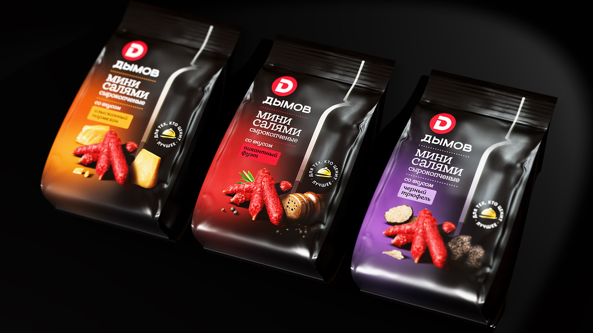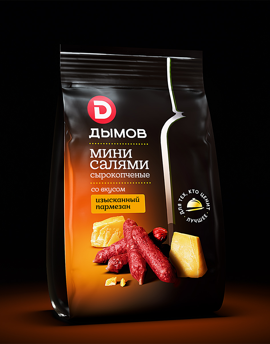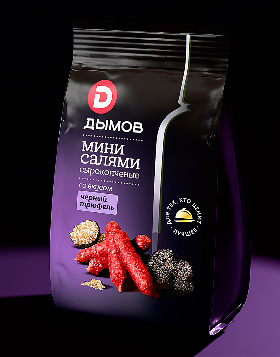 Мини-салями – это закуска под вино, рассчитанная на более взрослую аудиторию. Важно было подчеркнуть её изысканный характер и добавить ощущение премиальности.